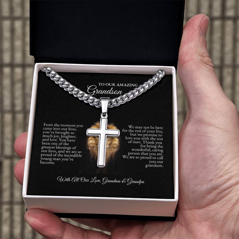 o My Grandson | From The Moment You Came Into Out Lives | Cuban Link Chain with Artisan Cross